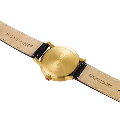 Zegarek marki Mondaine ma stal chirurgiczna kopertę 40 mm średnicy i jest wyposażony w pasek z materiału skóra. Wewnątrz koperty jest mechanizm Ronda i zegarek ma także szkiełko Sapphire.