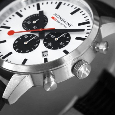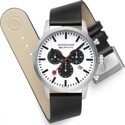Zegarek marki Mondaine ma stal chirurgiczna kopertę 41 mm średnicy i jest wyposażony w pasek z materiału Skóra wegańska. Wewnątrz koperty jest mechanizm Ronda i zegarek ma także szkiełko Pojedyncze szafirowe szkiełko anty-refleksyjne.