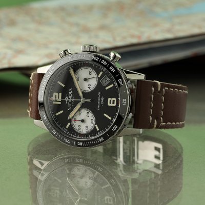 Zegarek marki Mondia ma stal chirurgiczna kopertę 40 mm średnicy i jest wyposażony w pasek z materiału skóra. Wewnątrz koperty jest mechanizm Miyota i zegarek ma także szkiełko Mineralny.