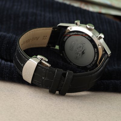 Zegarek marki Mondia ma stal chirurgiczna kopertę 43 mm średnicy i jest wyposażony w pasek z materiału skóra. Wewnątrz koperty jest mechanizm Miyota i zegarek ma także szkiełko Mineralny.