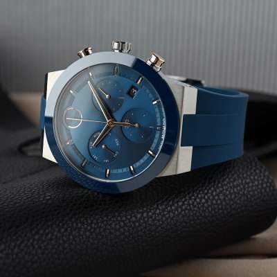Zegarek marki Movado ma stal chirurgiczna kopertę 44 mm średnicy i jest wyposażony w pasek z materiału guma. Wewnątrz koperty jest mechanizm Ronda i zegarek ma także szkiełko K1 Mineral.