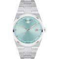 Zegarek marki Movado ma stal chirurgiczna kopertę 35 mm średnicy i jest wyposażony w pasek z materiału stal chirurgiczna.
