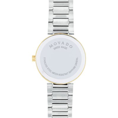 Zegarek marki Movado ma stal chirurgiczna kopertę 28 mm średnicy i jest wyposażony w pasek z materiału stal chirurgiczna. Wewnątrz koperty jest mechanizm ETA i zegarek ma także szkiełko Sapphire.