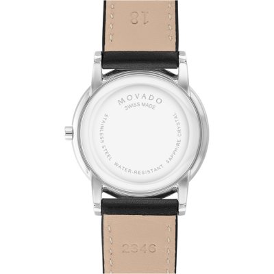 Zegarek marki Movado ma stal chirurgiczna kopertę 33 mm średnicy i jest wyposażony w pasek z materiału skóra. Wewnątrz koperty jest mechanizm ETA i zegarek ma także szkiełko Sapphire.