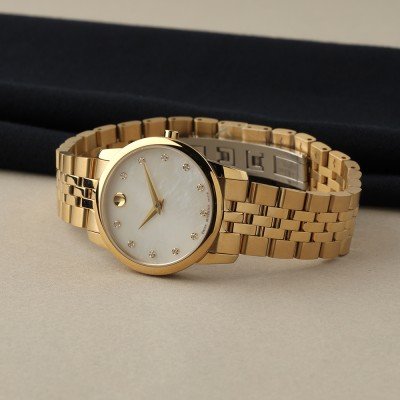 Zegarek marki Movado ma stal chirurgiczna kopertę 28 mm średnicy i jest wyposażony w pasek z materiału stal chirurgiczna. Wewnątrz koperty jest mechanizm ETA i zegarek ma także szkiełko Sapphire.