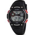 Zegarek marki Olympic ma Żywica kopertę 35 mm średnicy i jest wyposażony w pasek z materiału guma. Wewnątrz koperty jest mechanizm CN i zegarek ma także szkiełko Mineralny.