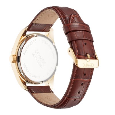 Zegarek marki Olympic ma stal chirurgiczna kopertę 39 mm średnicy i jest wyposażony w pasek z materiału skóra. Wewnątrz koperty jest mechanizm Miyota i zegarek ma także szkiełko Mineralny.
