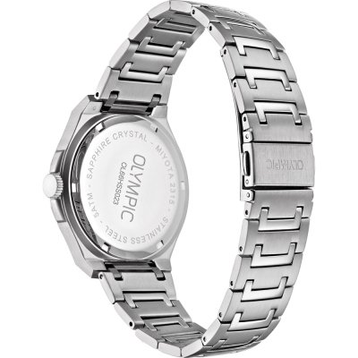 Zegarek marki Olympic ma stal chirurgiczna kopertę 44 mm średnicy i jest wyposażony w pasek z materiału stal chirurgiczna. Wewnątrz koperty jest mechanizm Miyota i zegarek ma także szkiełko Sapphire.