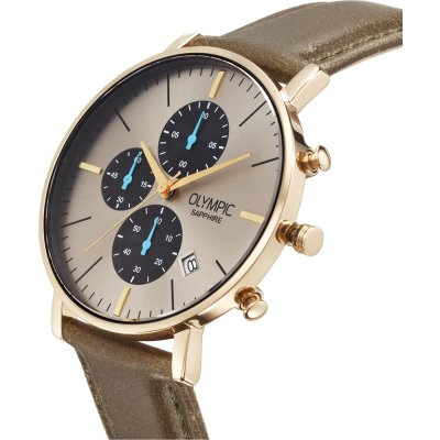 Zegarek marki Olympic ma stal chirurgiczna kopertę 40 mm średnicy i jest wyposażony w pasek z materiału skóra. Wewnątrz koperty jest mechanizm Seiko Instruments Inc. i zegarek ma także szkiełko Sapphire.