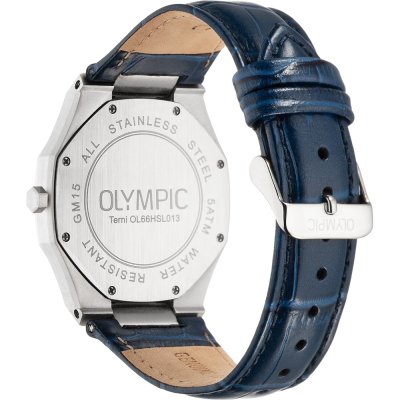 Zegarek marki Olympic ma stal chirurgiczna kopertę 40 mm średnicy i jest wyposażony w pasek z materiału skóra. Wewnątrz koperty jest mechanizm Miyota i zegarek ma także szkiełko Mineralny.