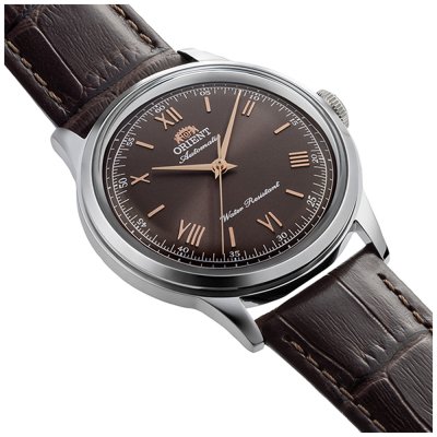 Zegarek marki Orient ma stal chirurgiczna kopertę 38 mm średnicy i jest wyposażony w pasek z materiału skóra. Wewnątrz koperty jest mechanizm Epson i zegarek ma także szkiełko Mineralny.