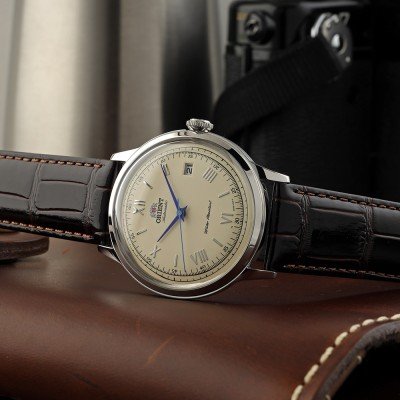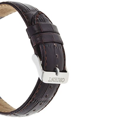 Zegarek marki Orient ma stal chirurgiczna kopertę 40.5 mm średnicy i jest wyposażony w pasek z materiału skóra. Wewnątrz koperty jest mechanizm Orient i zegarek ma także szkiełko Mineralny.