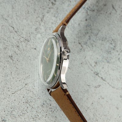 Zegarek marki Orient ma stal chirurgiczna kopertę 42 mm średnicy i jest wyposażony w pasek z materiału Skóra syntetyczna. Wewnątrz koperty jest mechanizm Orient i zegarek ma także szkiełko Mineralny.
