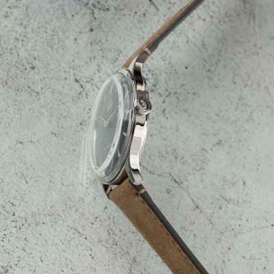 Zegarek marki Orient ma stal chirurgiczna kopertę 42 mm średnicy i jest wyposażony w pasek z materiału skóra. Wewnątrz koperty jest mechanizm Orient i zegarek ma także szkiełko Mineralny.