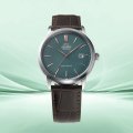 Zegarek marki Orient ma stal chirurgiczna kopertę 42 mm średnicy i jest wyposażony w pasek z materiału skóra. Wewnątrz koperty jest mechanizm Orient i zegarek ma także szkiełko Mineralny.