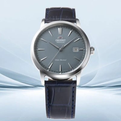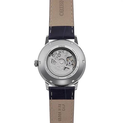 Zegarek marki Orient ma stal chirurgiczna kopertę 42 mm średnicy i jest wyposażony w pasek z materiału skóra. Wewnątrz koperty jest mechanizm Orient i zegarek ma także szkiełko Mineralny.