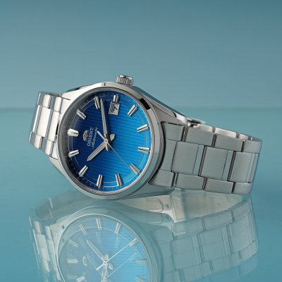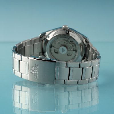 Zegarek marki Orient ma stal chirurgiczna kopertę 38.5 mm średnicy i jest wyposażony w pasek z materiału stal chirurgiczna. Wewnątrz koperty jest mechanizm Orient i zegarek ma także szkiełko Sapphire.