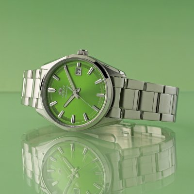 Zegarek marki Orient ma stal chirurgiczna kopertę 38.5 mm średnicy i jest wyposażony w pasek z materiału stal chirurgiczna. Wewnątrz koperty jest mechanizm Orient i zegarek ma także szkiełko Sapphire.