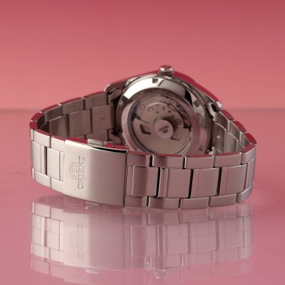 Zegarek marki Orient ma stal chirurgiczna kopertę 38.5 mm średnicy i jest wyposażony w pasek z materiału stal chirurgiczna. Wewnątrz koperty jest mechanizm Orient i zegarek ma także szkiełko Sapphire.
