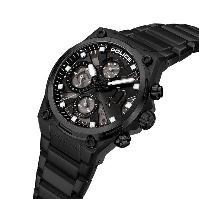 Zegarek marki Police ma stal chirurgiczna kopertę 43 mm średnicy i jest wyposażony w pasek z materiału stal chirurgiczna. Wewnątrz koperty jest mechanizm Seiko Instruments Inc. i zegarek ma także szkiełko Mineralny.