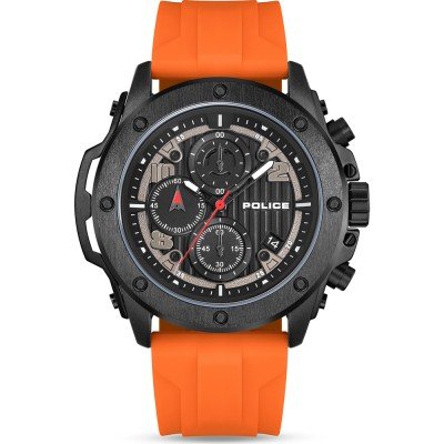Zegarek marki Police ma Stop metali kopertę 50 mm średnicy i jest wyposażony w pasek z materiału guma. Wewnątrz koperty jest mechanizm Sunon i zegarek ma także szkiełko Mineralny.