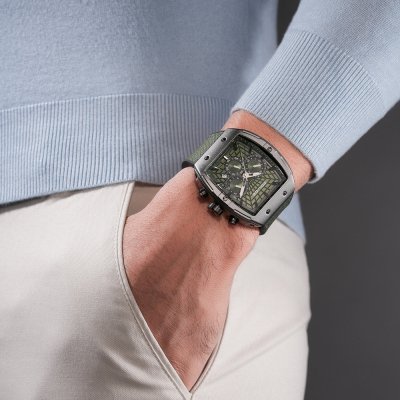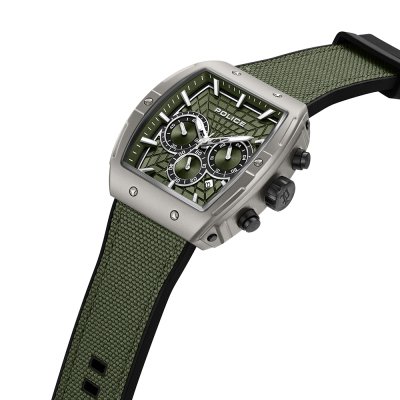 Zegarek marki Police ma Stop metali kopertę 50 mm średnicy i jest wyposażony w pasek z materiału guma. Wewnątrz koperty jest mechanizm Sunon i zegarek ma także szkiełko Mineralny.
