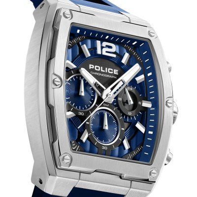 Zegarek marki Police ma stal chirurgiczna kopertę 42 mm średnicy i jest wyposażony w pasek z materiału guma. Wewnątrz koperty jest mechanizm Seiko Instruments Inc. i zegarek ma także szkiełko Mineralny.