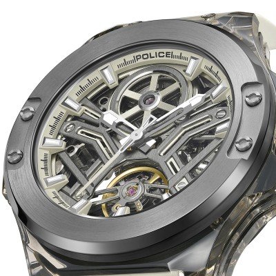 Zegarek marki Police ma Żywica kopertę 44 mm średnicy i jest wyposażony w pasek z materiału guma. Wewnątrz koperty jest mechanizm CN i zegarek ma także szkiełko Mineralny.