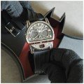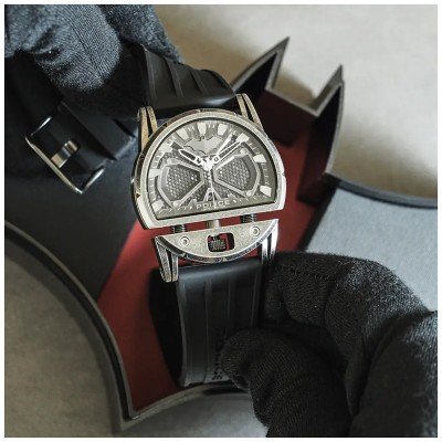 Ten budzący respekt zegarek bazuje na niepowstrzymanej sile samego Mrocznego Rycerza, przykuwając uwagę i budząc szacunek. Koperta o wymiarach 46 x 53 mm jest podzielona na dwie połowy, z których każda zawiera starannie przemyślane detale, takie jak przemysłowe śruby i tarcza o fakturze plastra miodu oraz ukryta korona na godzinie 6. Ten limitowany zegarek jest dostarczany w komplecie z kolekcjonerskim pudełkiem i podstawką.