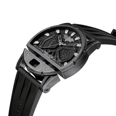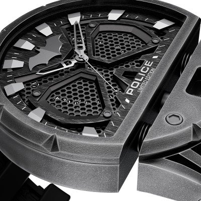 Zegarek marki Police ma stal chirurgiczna kopertę 46 mm średnicy i jest wyposażony w pasek z materiału guma. Wewnątrz koperty jest mechanizm Seiko Instruments Inc. i zegarek ma także szkiełko Mineralny.