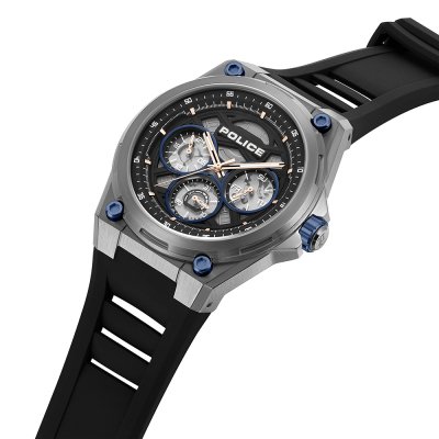 Zegarek marki Police ma stal chirurgiczna kopertę 45 mm średnicy i jest wyposażony w pasek z materiału guma. Wewnątrz koperty jest mechanizm Seiko Instruments Inc. i zegarek ma także szkiełko Mineralny.