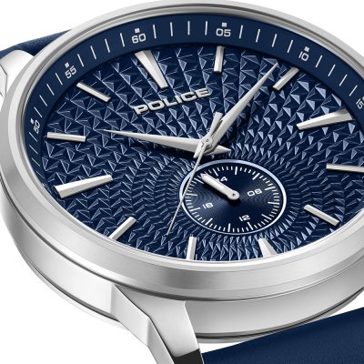 Zegarek marki Police ma stal chirurgiczna kopertę 44 mm średnicy i jest wyposażony w pasek z materiału skóra. Wewnątrz koperty jest mechanizm Seiko i zegarek ma także szkiełko Mineralny.