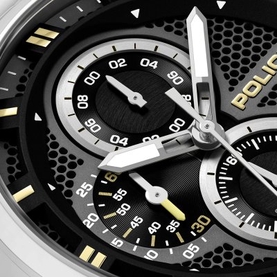 Zegarek marki Police ma stal chirurgiczna kopertę 43 mm średnicy i jest wyposażony w pasek z materiału stal chirurgiczna. Wewnątrz koperty jest mechanizm Seiko Instruments Inc. i zegarek ma także szkiełko Mineralny.