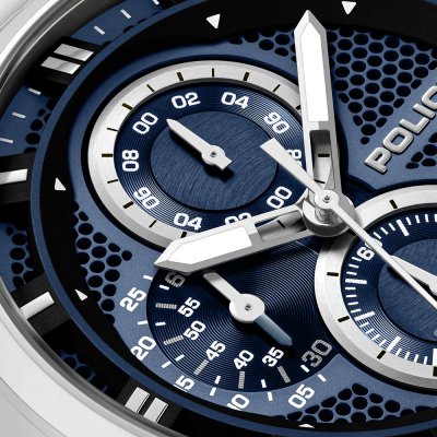 Zegarek marki Police ma stal chirurgiczna kopertę 43 mm średnicy i jest wyposażony w pasek z materiału stal chirurgiczna. Wewnątrz koperty jest mechanizm Seiko Instruments Inc. i zegarek ma także szkiełko Mineralny.