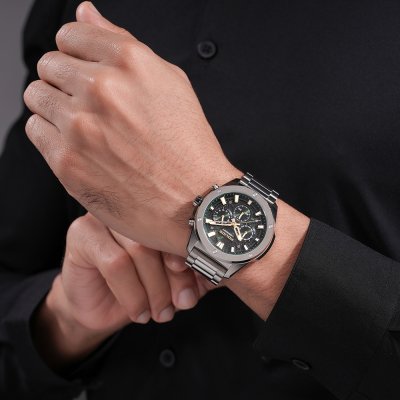 Zegarek marki Police ma stal chirurgiczna kopertę 43 mm średnicy i jest wyposażony w pasek z materiału stal chirurgiczna. Wewnątrz koperty jest mechanizm Seiko Instruments Inc. i zegarek ma także szkiełko Mineralny.