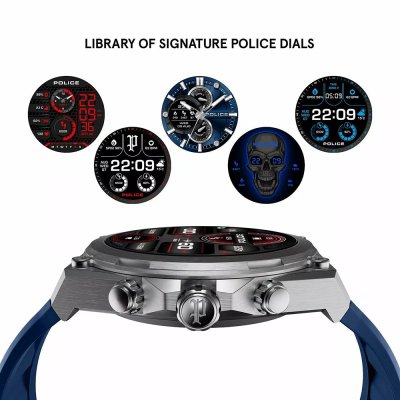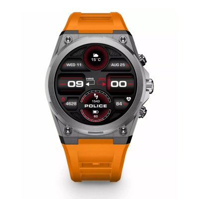Zegarek marki Police ma metal kopertę 48 mm średnicy i jest wyposażony w pasek z materiału guma. Wewnątrz koperty jest mechanizm Police i zegarek ma także szkiełko Mineralny.