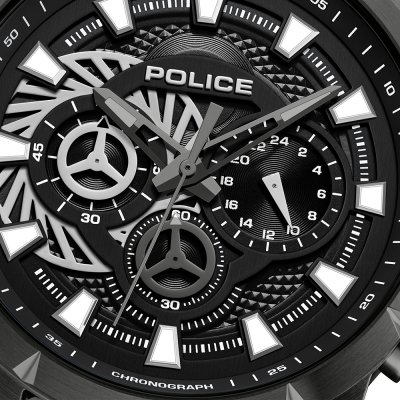 Zegarek marki Police ma stal chirurgiczna kopertę 45 mm średnicy i jest wyposażony w pasek z materiału guma. Wewnątrz koperty jest mechanizm Seiko Instruments Inc. i zegarek ma także szkiełko Mineralny.