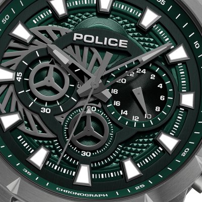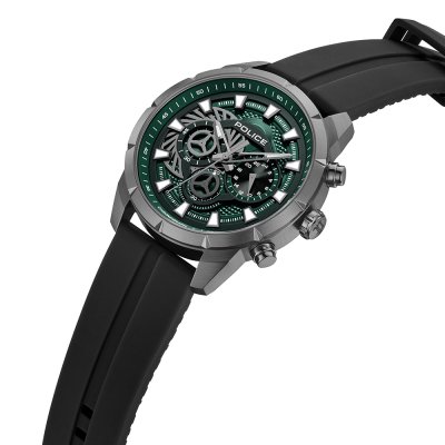 Zegarek marki Police ma stal chirurgiczna kopertę 45 mm średnicy i jest wyposażony w pasek z materiału guma. Wewnątrz koperty jest mechanizm Seiko Instruments Inc. i zegarek ma także szkiełko Mineralny.