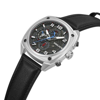 Zegarek marki Police ma stal chirurgiczna kopertę 45 mm średnicy i jest wyposażony w pasek z materiału skóra. Wewnątrz koperty jest mechanizm Seiko Instruments Inc. i zegarek ma także szkiełko Mineralny.