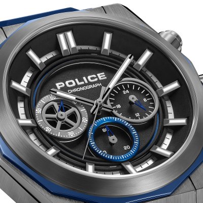 Zegarek marki Police ma stal chirurgiczna kopertę 46 mm średnicy i jest wyposażony w pasek z materiału guma. Wewnątrz koperty jest mechanizm Seiko Instruments Inc. i zegarek ma także szkiełko Mineralny.