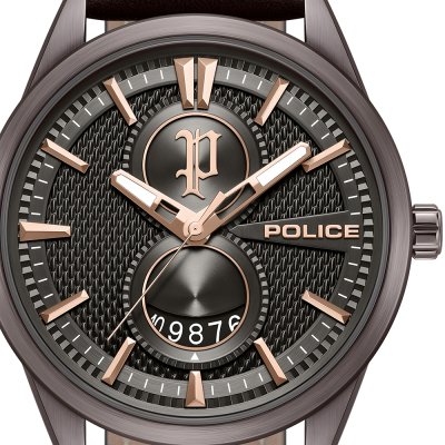 Zegarek marki Police ma stal chirurgiczna kopertę 43 mm średnicy i jest wyposażony w pasek z materiału skóra. Wewnątrz koperty jest mechanizm Seiko Instruments Inc. i zegarek ma także szkiełko Mineralny.