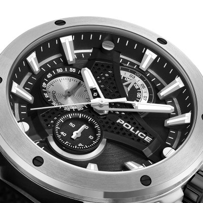 Zegarek marki Police ma stal chirurgiczna kopertę 45 mm średnicy i jest wyposażony w pasek z materiału guma. Wewnątrz koperty jest mechanizm Seiko Instruments Inc. i zegarek ma także szkiełko Mineralny.
