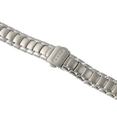 Pasek do zegarka Rado jest wykonany z materiału stal nierdzewna i jest zamocowany do zegarka za pomocą… bolec i rurka. Ten pasek ma szerokość 12 mm i zamyka się za pomocą zapięcie zatrzaskowe z przyciskami. Ten pasek nie ma prostego mocowania, co oznacza, że pasuje wyłącznie do zegarków z poniższej listy.