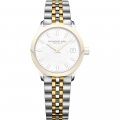 Pasek do zegarka Raymond Weil jest wykonany z materiału stal nierdzewna i jest zamocowany do zegarka za pomocą… kołki sprężyste. Ten pasek ma szerokość 18 mm i zamyka się za pomocą zapięcie motylkowe z przyciskami. Ten pasek nie ma prostego mocowania, co oznacza, że pasuje wyłącznie do zegarków z poniższej listy.