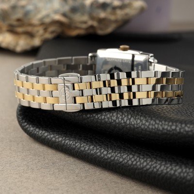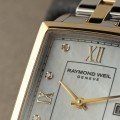 Zegarki o kwadratowej i prostokątnej tarczy, które były popularnym stylem w epoce Art Deco, powracają. Ten nowy damski model Toccata łączy wyrafinowany urok Art Deco z wydłużoną prostokątną tarczą i smukłą kopertą o grubości 6,25 mm. Jest to jak dotąd najcieńszy projekt koperty Raymonda Weila, który nadaje zegarkowi bardzo smukły profil. Warstwowa konstrukcja sprawia, że zegarek ten daje iluzję głębi bez grubości. Zegarek jest uzupełniony monogramem RW na koronce. Prostokątny model Toccata jest dostępny w kilku kombinacjach czarnych cyfr rzymskich na czystej białej tarczy lub naprzemiennych złotych i diamentowych indeksów na tarczy z masy perłowej.