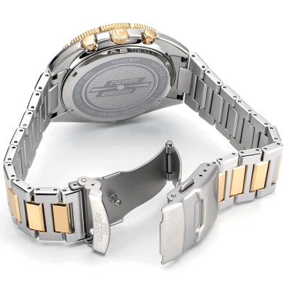 Zegarek marki Roamer ma stal chirurgiczna kopertę 44 mm średnicy i jest wyposażony w pasek z materiału stal chirurgiczna.