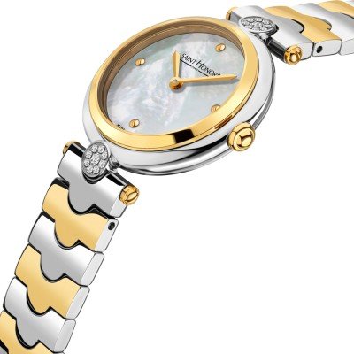 Zegarek marki Saint Honoré ma stal chirurgiczna kopertę 28 mm średnicy i jest wyposażony w pasek z materiału stal chirurgiczna. Wewnątrz koperty jest mechanizm Ronda i zegarek ma także szkiełko Mineralny.