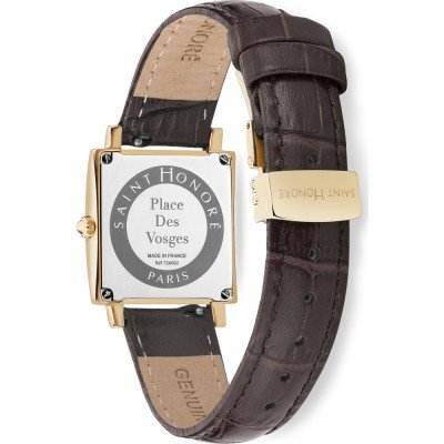 Zegarek marki Saint Honoré ma stal chirurgiczna kopertę 26 mm średnicy i jest wyposażony w pasek z materiału skóra. Wewnątrz koperty jest mechanizm Ronda i zegarek ma także szkiełko Mineralny.