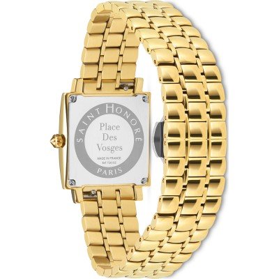 Zegarek marki Saint Honoré ma stal chirurgiczna kopertę 26 mm średnicy i jest wyposażony w pasek z materiału stal chirurgiczna. Wewnątrz koperty jest mechanizm Ronda i zegarek ma także szkiełko Mineralny.