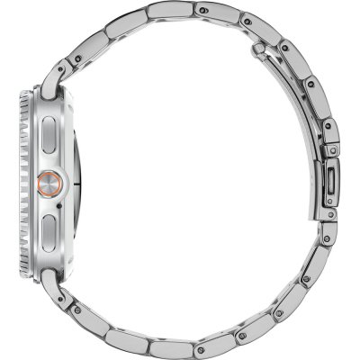 Zegarek marki Samsung ma aluminium kopertę 46 mm średnicy i jest wyposażony w pasek z materiału Skóra na silikonie. Wewnątrz koperty jest mechanizm Samsung i zegarek ma także szkiełko Sapphire.